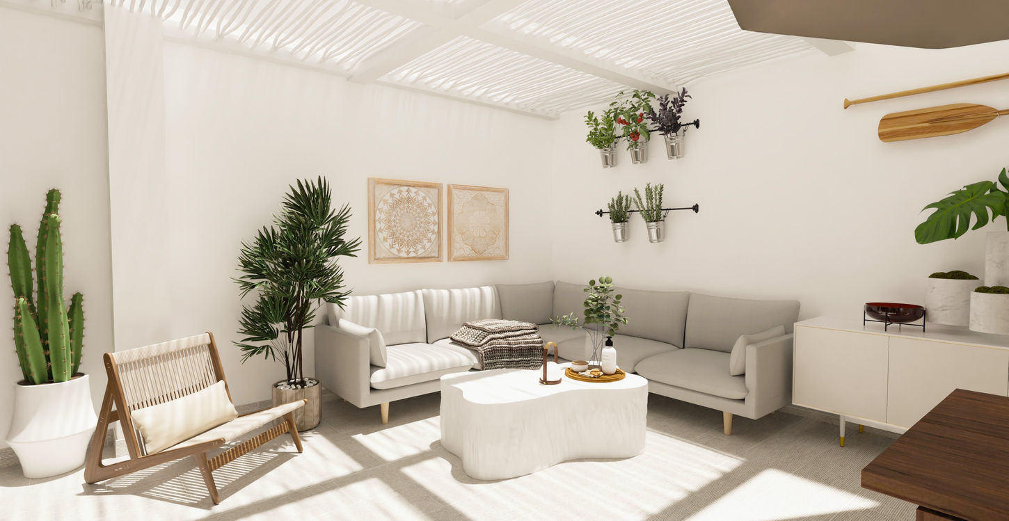 La generosa amplitud del patio, junto con la distribución abierta del dúplex, crea un ambiente único de confort y estilo.